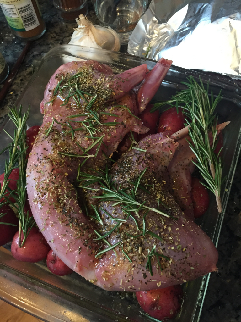 just seasoned with salt and pepper, I didn’t want to cover the boar taste. Seared in hot pan and finished in oven at 400 F till cooked