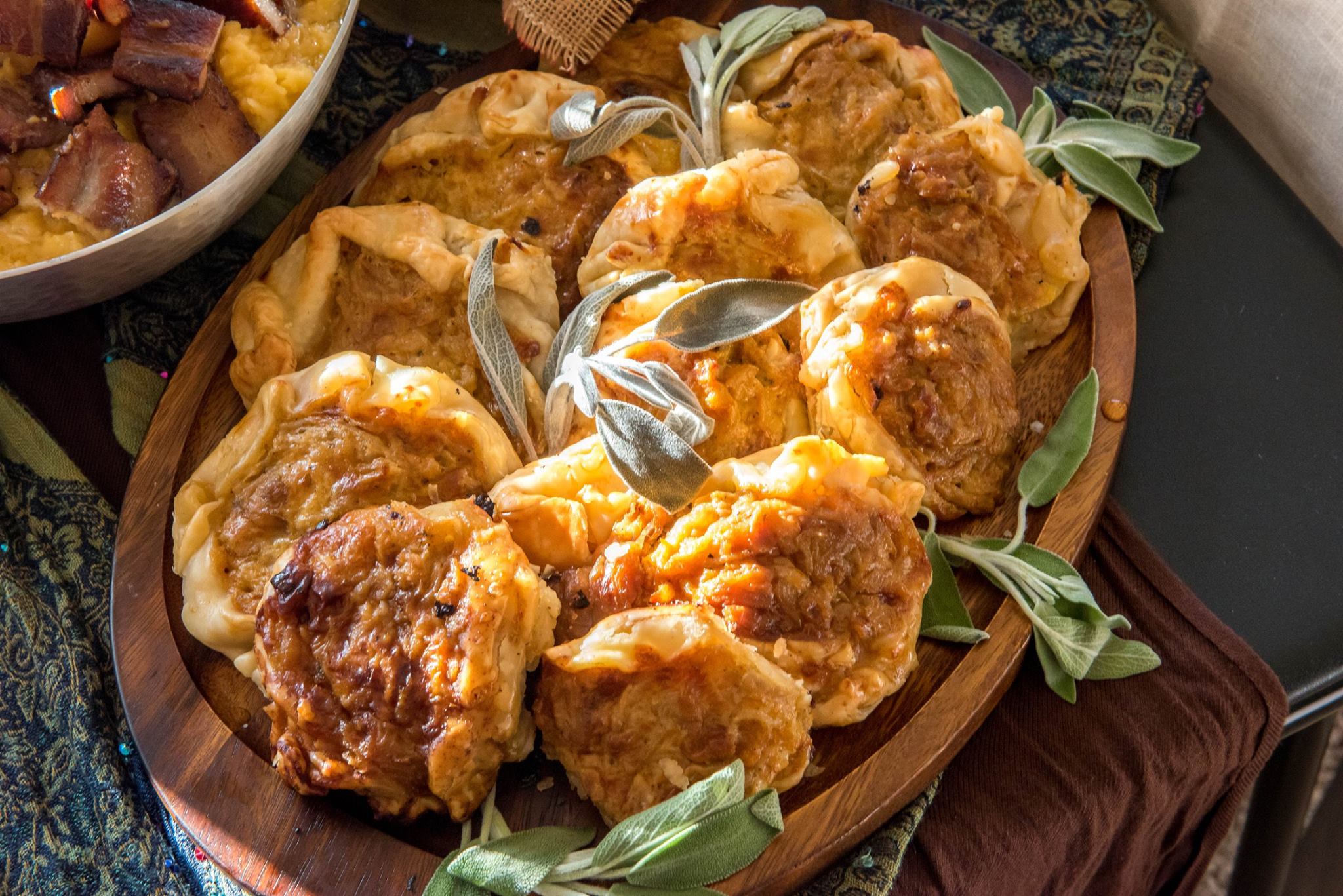 Carmelized onion, potato, cheddar, sage tarts