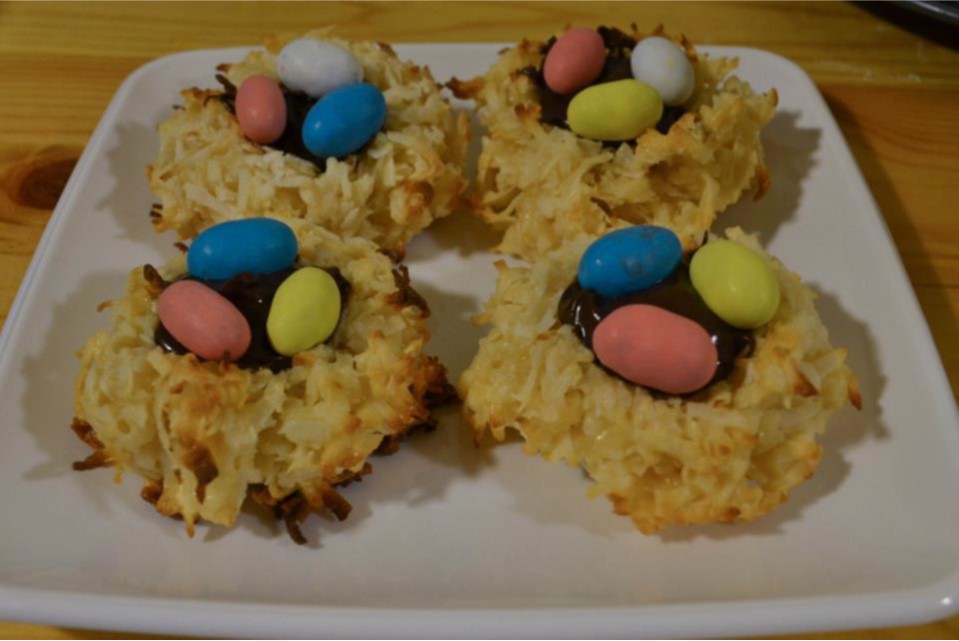 Make macaroons. While still warm, push down in the center to create a hole, fill with a dollup of nutella. Use mini Robin’s eggs on top