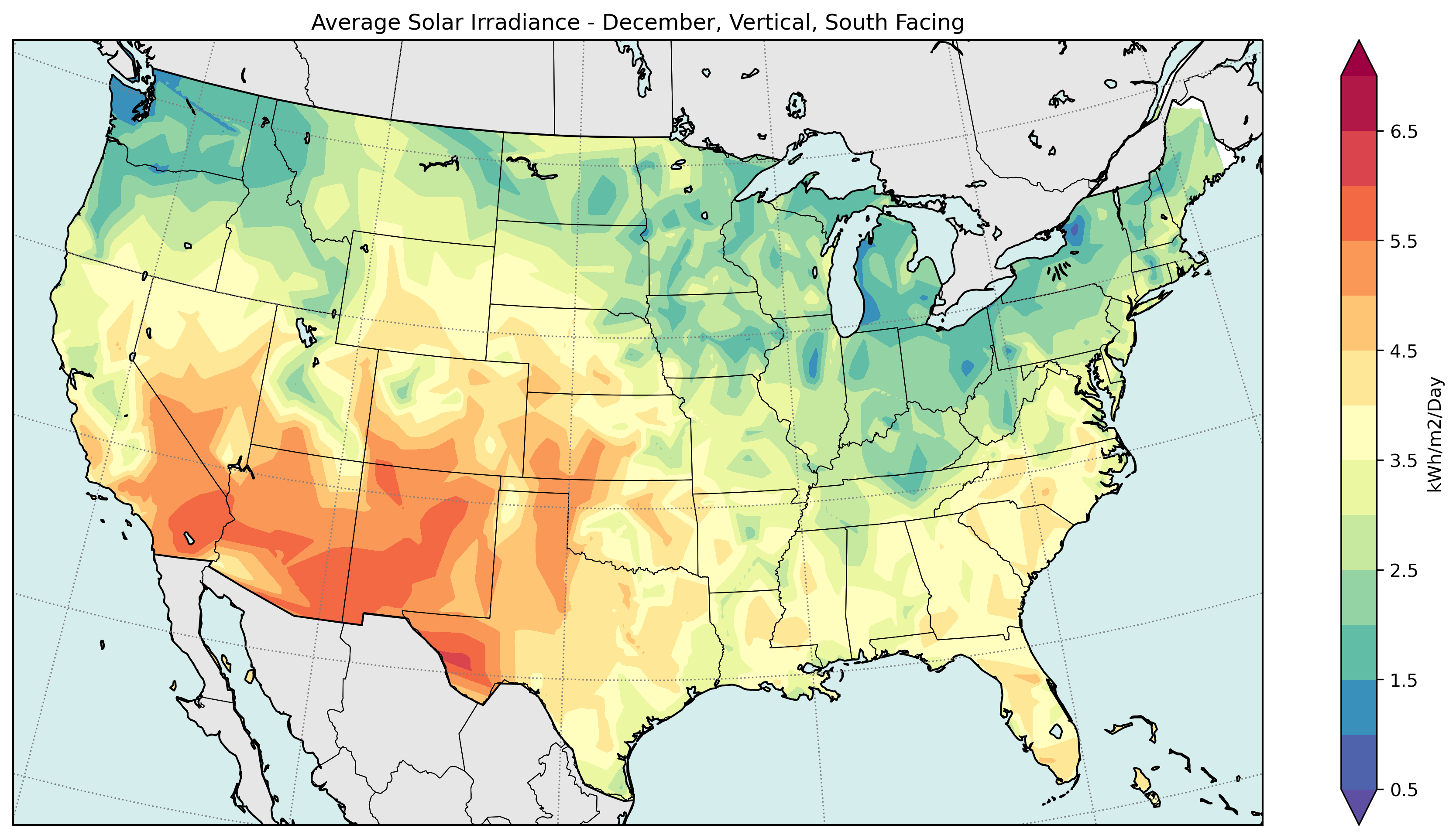 Read MoreContour mapping of geographic solar radiation data (sourced from NREL) at different locations, angles, and orientations.